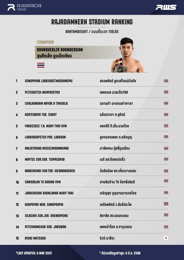 Muay Thai Fighter Ranking [Updated April 2025] – Rajadamnern Stadium