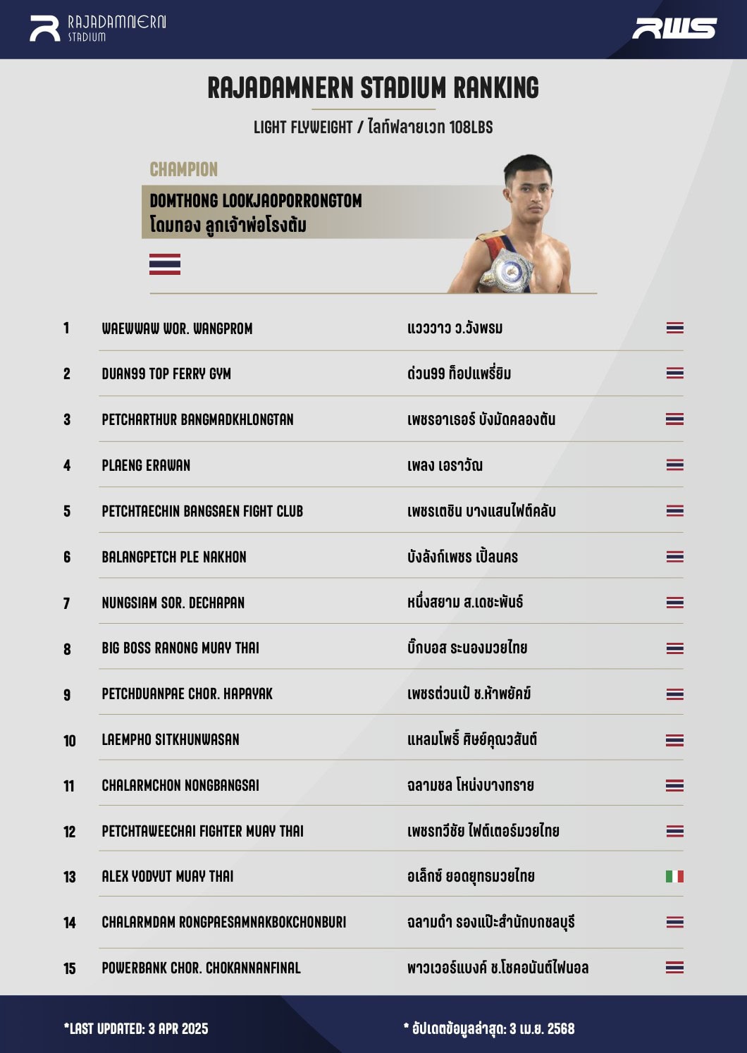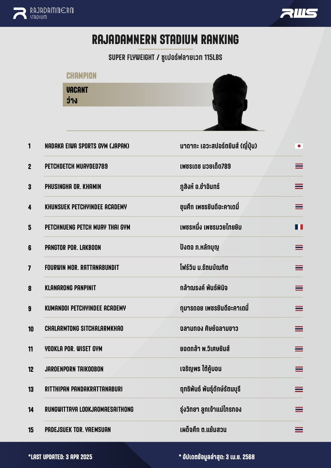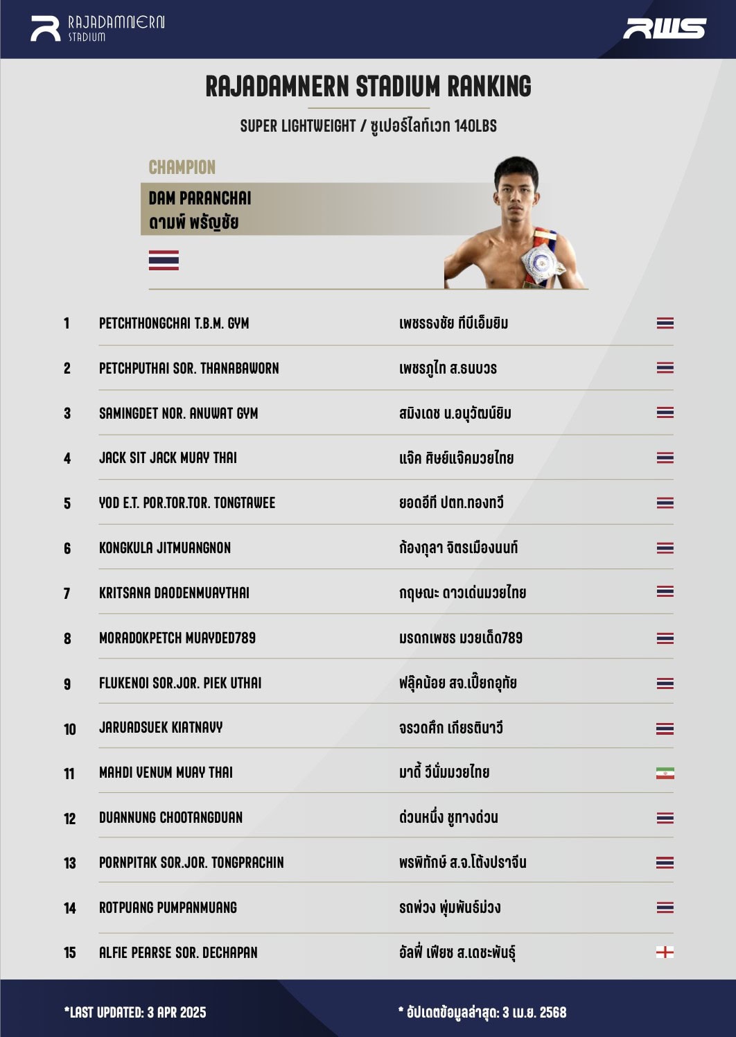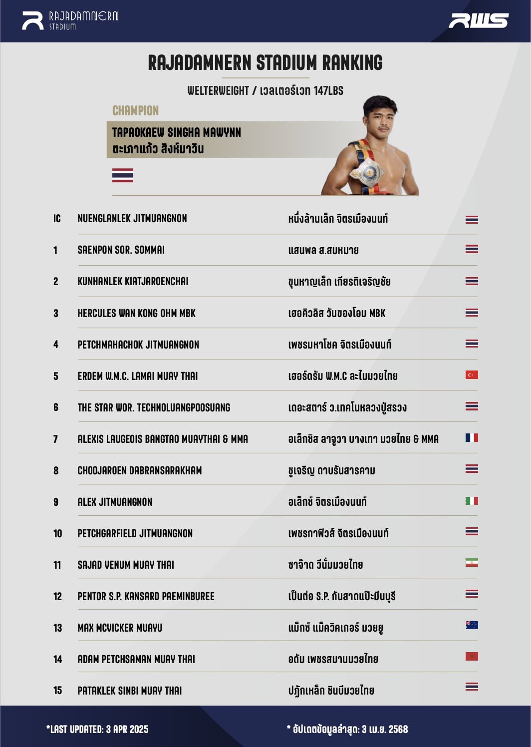 Muay Thai Fighter Ranking [Updated April 2025] – Rajadamnern Stadium