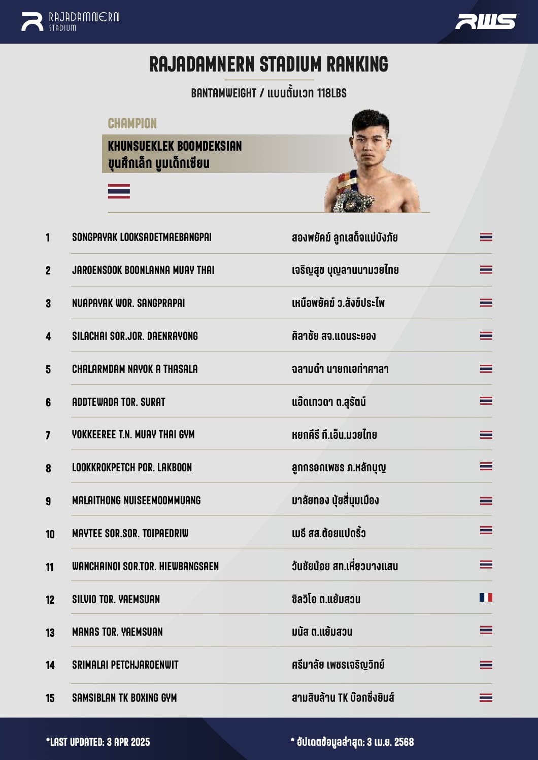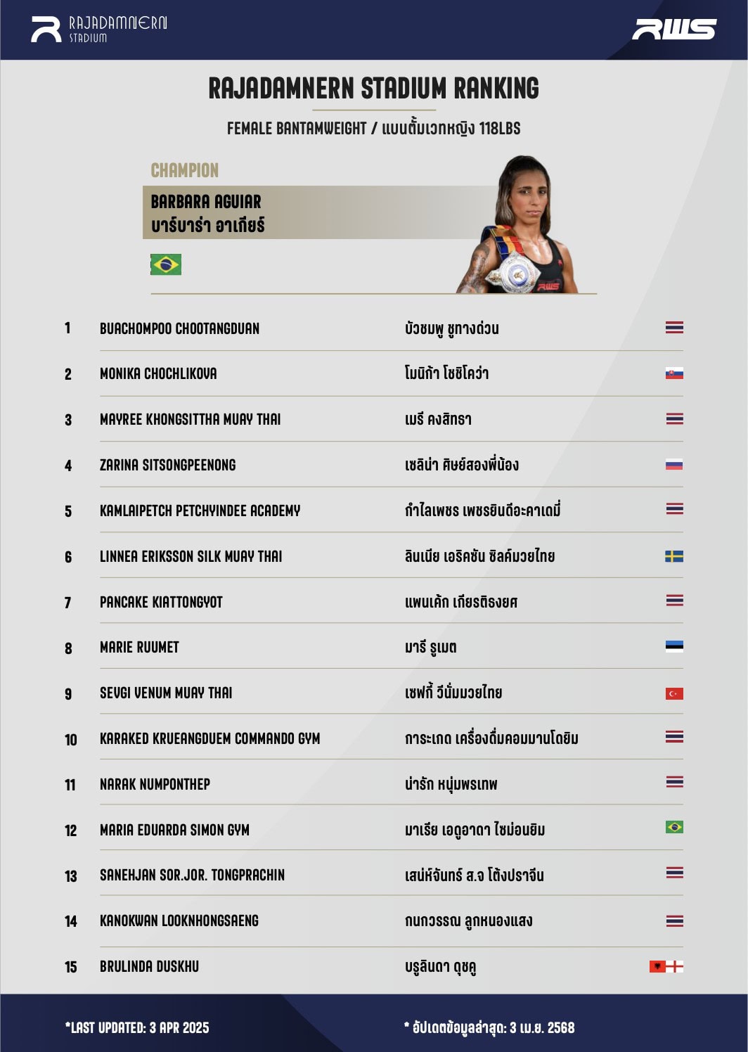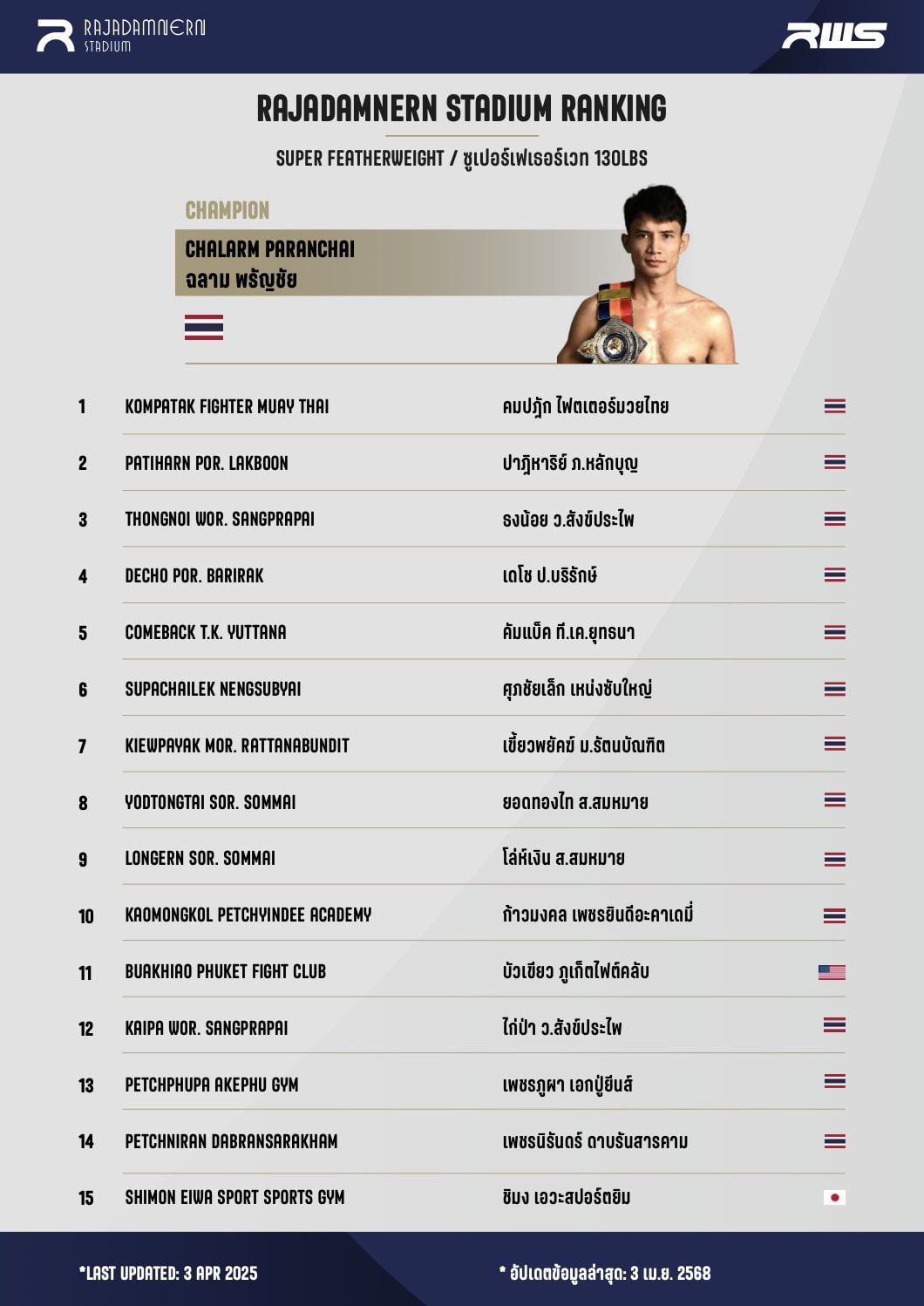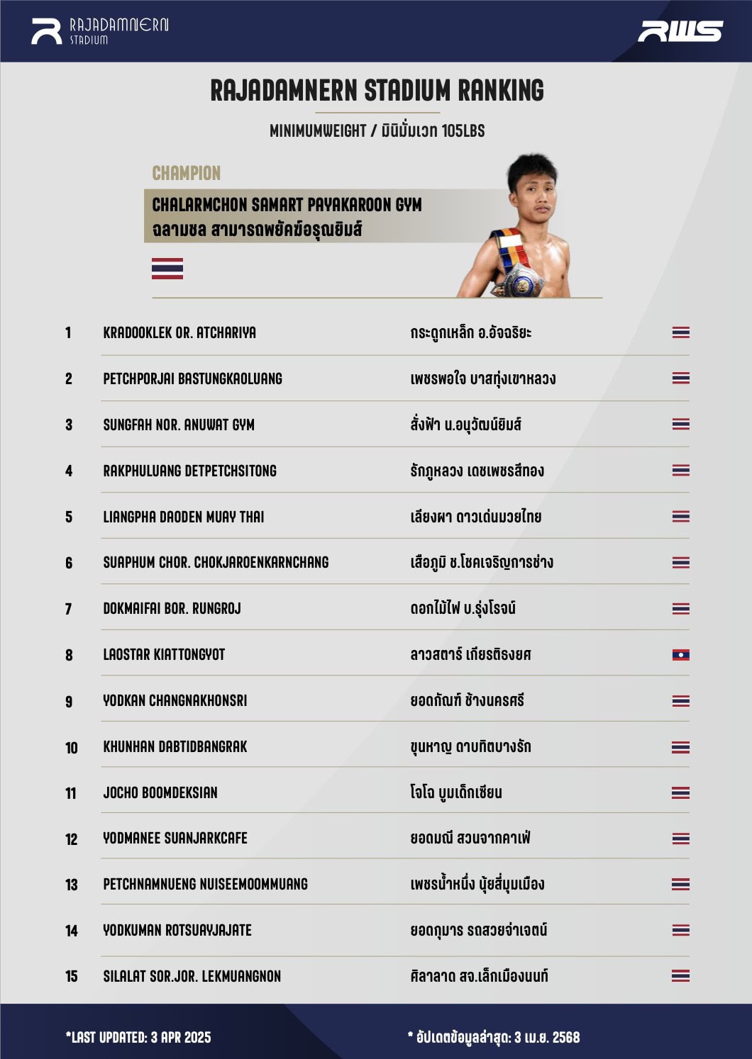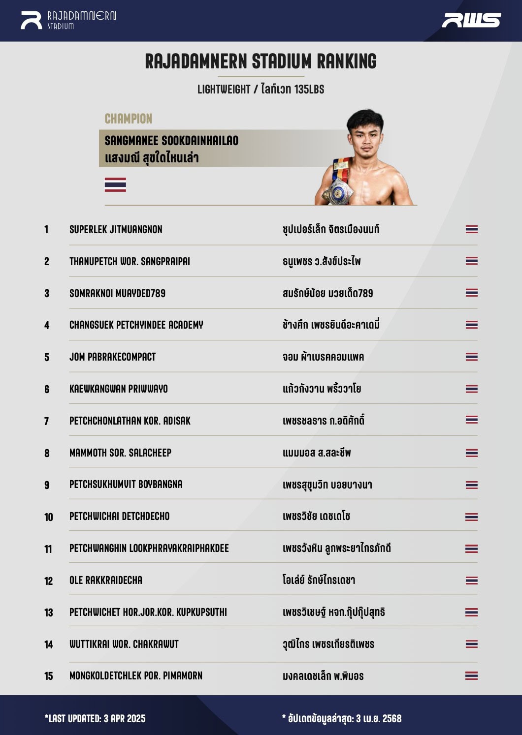 Muay Thai Fighter Ranking [Updated April 2025] – Rajadamnern Stadium