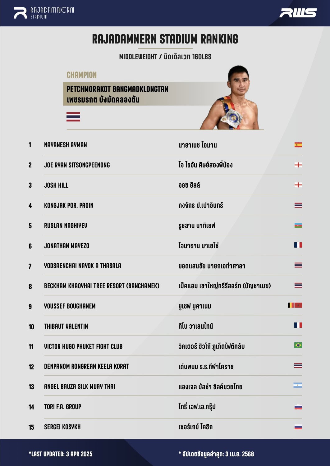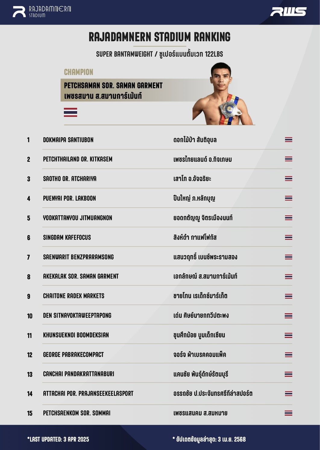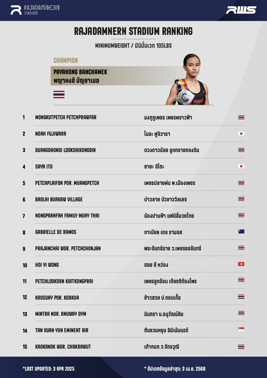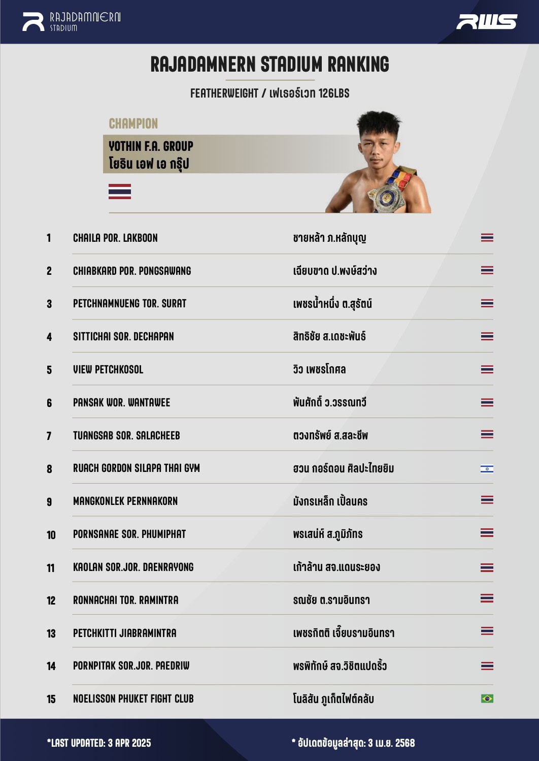Muay Thai Fighter Ranking [Updated April 2025] – Rajadamnern Stadium