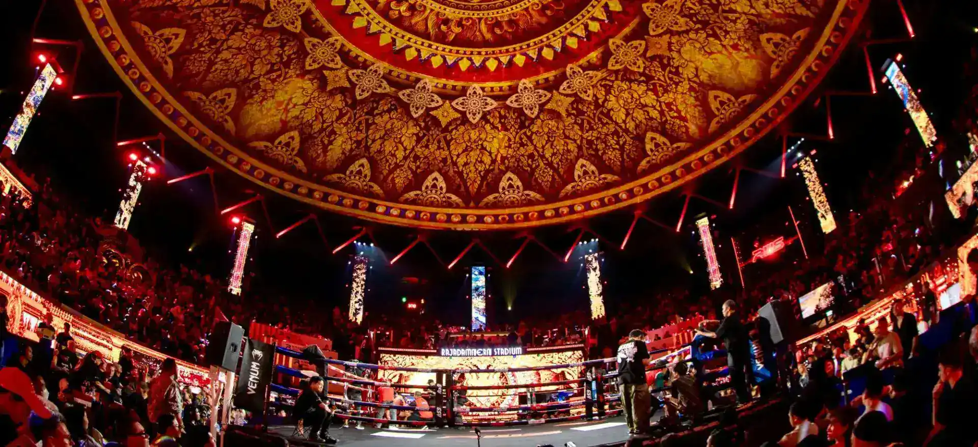 ラジャダムナン・スタジアムはムエタイを体験するた めの究極の目的地であり、このスポーツの豊富な文化 遺産と絡み合った一生に一度の興奮を提供します。ム エタイの没入型体験により、あなたの瞬間をスタジア ムで盛り上げるリングアクションをお楽しみいただけ ます。これまでにない1,000年のムエタイの旅とあな たを結びます。それはムエタイを体験する最も純粋で 真正性のある方法です。ムエタイを体験する唯一の方 法です。