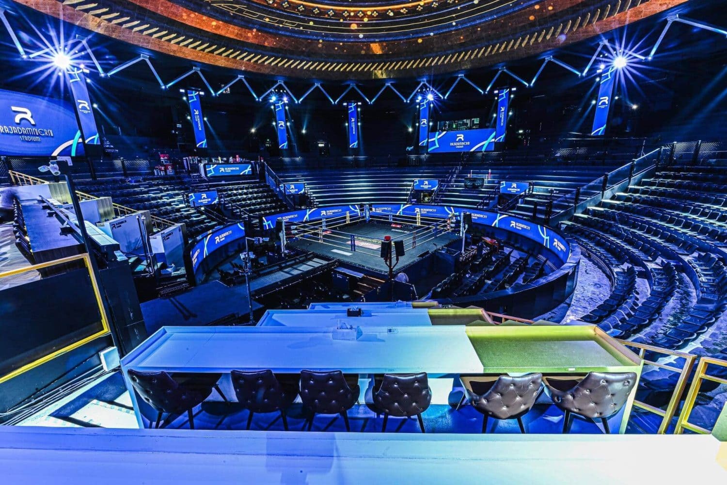 ラジャダムナンの忠誠心。あなたの上には誰もいません。あなたの下にも誰もいません。あなたとリングだけです。ラジャダムナン・スタジアムの3,500席のうち、最高の眺めを提供するスーペリア・パノラミック・バルコニーでは、毎晩わずか15席の特別席のみをご用意しています。VIPラウンジに位置するこの座席からは、スタジアム全体とその下で繰り広げられるすべてのアクションの息をのむようなパノラマビューをお楽しみいただけます。このエリート席は土曜日の夜のRWSファイト・ナイトでのみご利用いただけます。