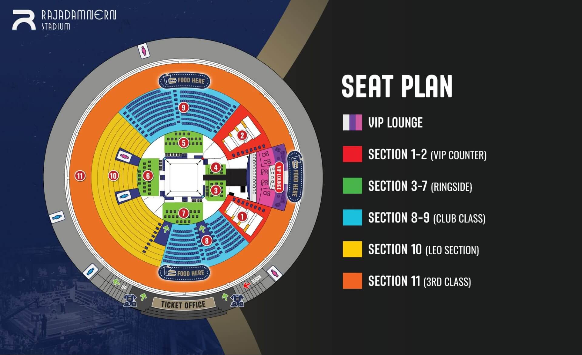 ラジャダムナン・スタジアムのVIPラウンジは、広々としたプライベートな空間を提供し、座る、立つ、歩く、そしてスタイリッシュに交流するのに最適です。世界クラスのセレブリティが好むアクセスレベルで、あなたのすべての好みに合わせたプレミアムシートをお選びいただけます。